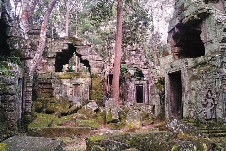 Angkor Archaeological Park contains the magnificent remains of several capitals of the Khmer Empire of the 9th to the 15th centuries, including the largest pre-industrial city in the world. The most famous ones are the Temple of Angkor Wat, Angkor Thom, the Bayon temple with its countless sculptural decorations of Buddha faces and Ta Prohm Temple.