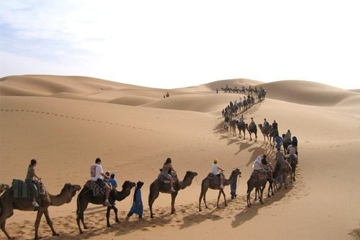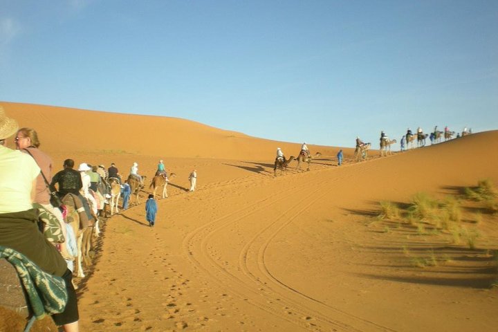 Cross the great sand dunes of Erg chebbi on camels.
