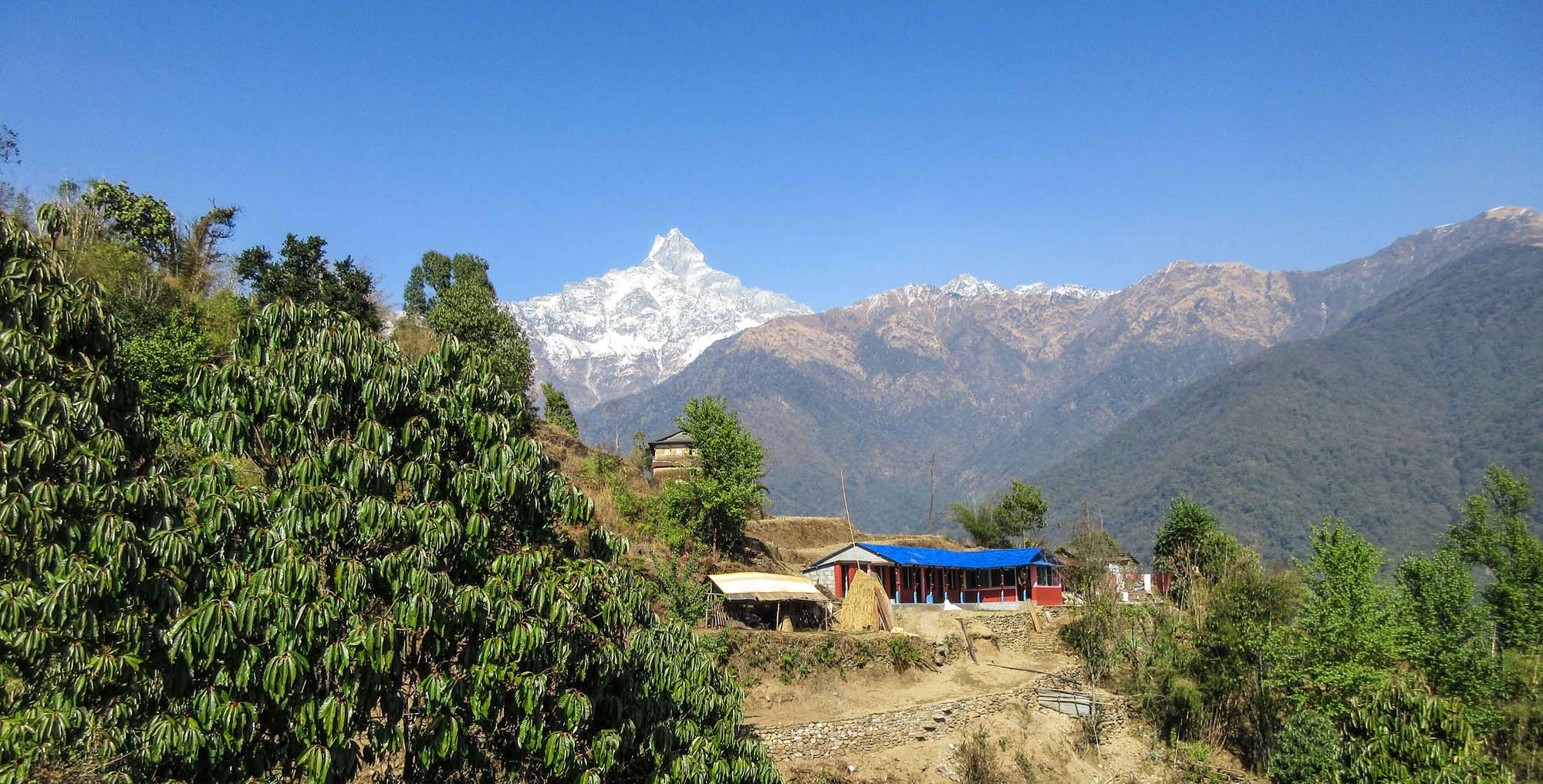 After a relaxed breakfast, trek gently through the shade of the forest and out onto terraced fields. You will follow a different route down, to the upper Mardi Khola, the torrent that was once the ice and snow of the Mardi Himal. Although remote and still off the beaten ‘tea house’ trekking routes, your expedition now follows the arm valley and past friendly villages. Eventually, you'll arrive at Lwang village, your stop for the night. Here, there are organic tea gardens. In the evening, meet a mothers' group that works to raise money for local projects. Overnight in your unique and authentic homestay. Meals: Breakfast, Lunch & Dinner.